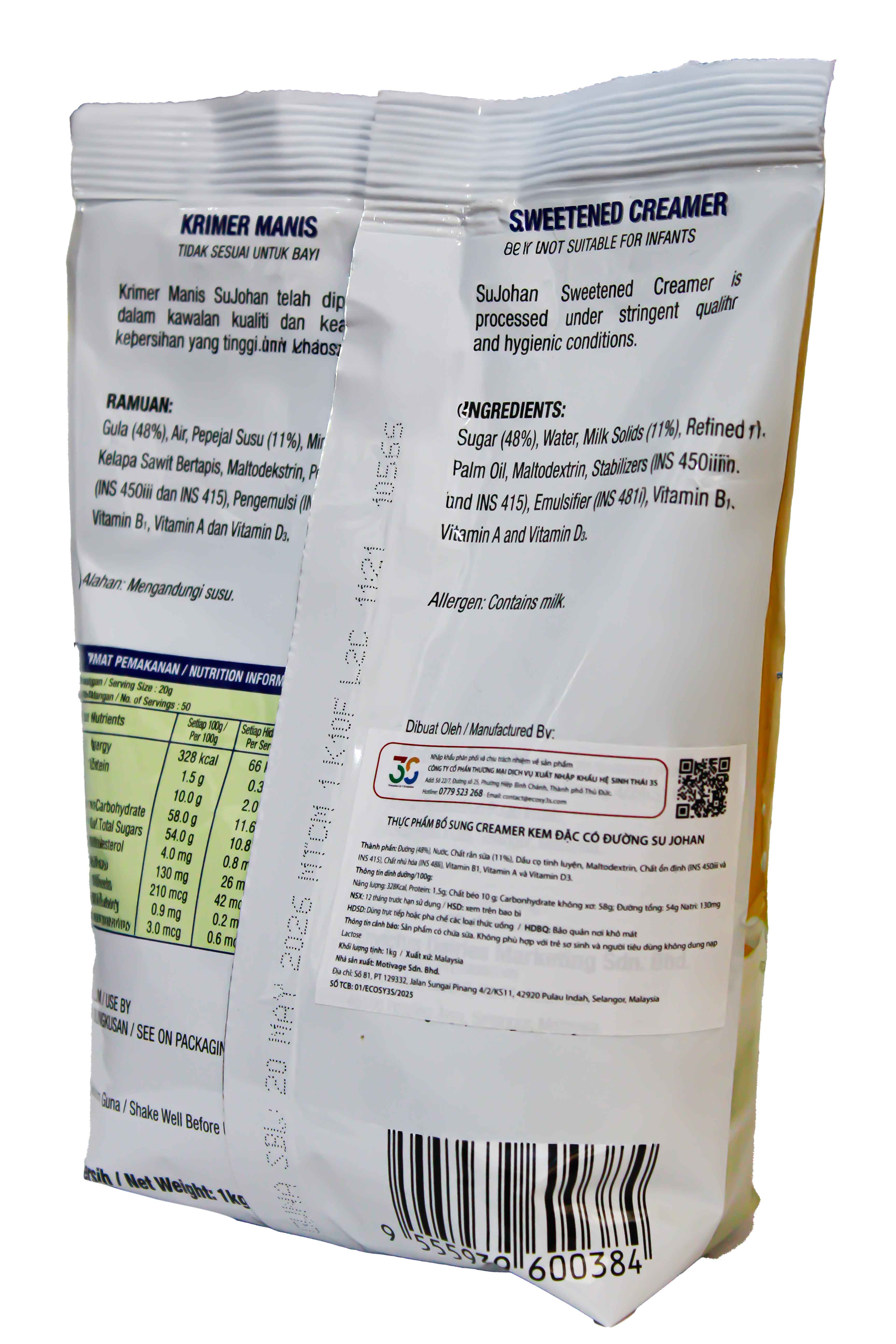 Sữa Đặc Su Johan 2.5kg là sản phẩm creamer có đường nhập khẩu từ Malaysia, được phân phối độc quyền bởi Ecosy3S.